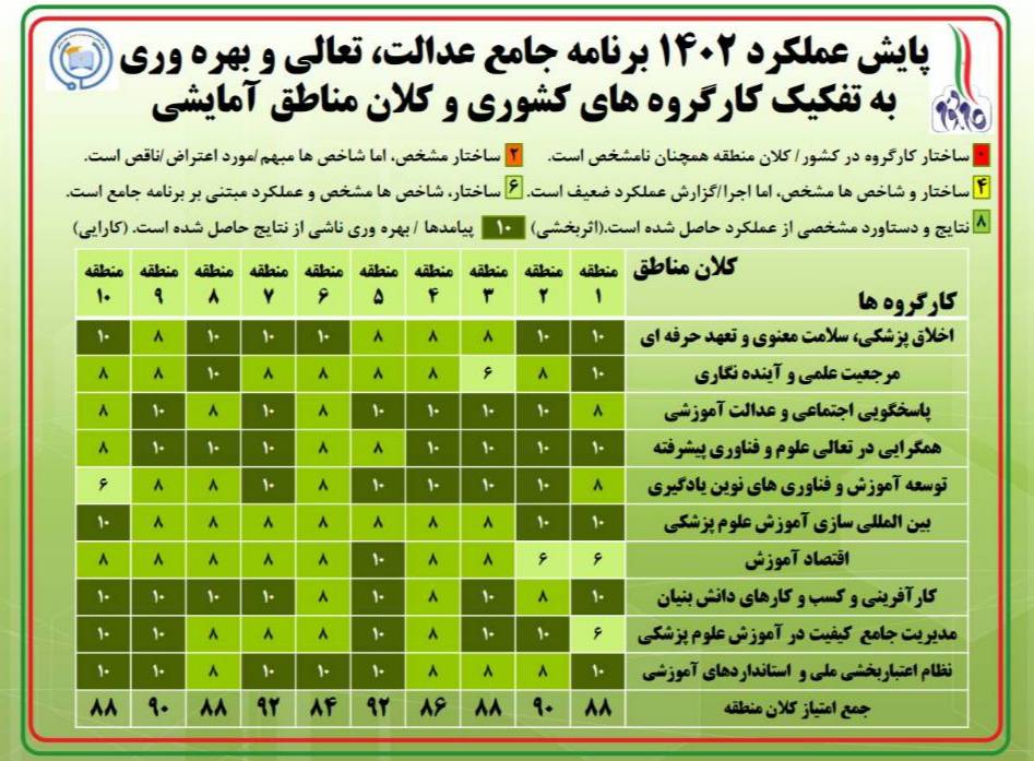 کسب امتیاز کامل و رتبه اول در پایش عملکرد سال 1402 برنامه جامع عدالت، تعالی و بهره وری در آموزش علوم پزشکی