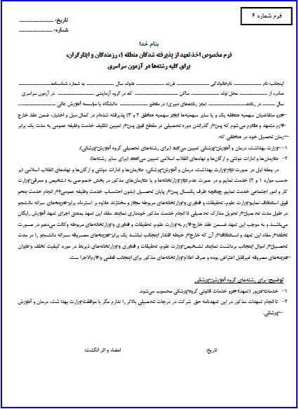 - فرم تکمیل شده تعهد منطقه 1 و دانشجویان شاهد و ایثارگر(کلیک کنید)