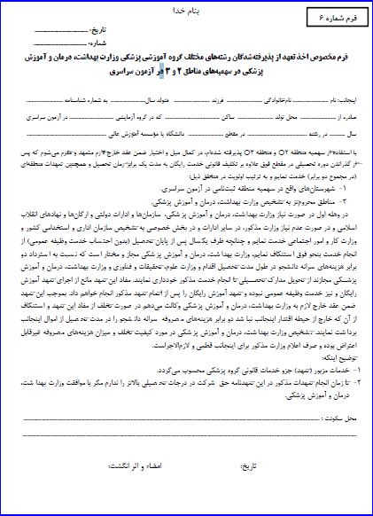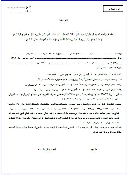 - فرم تکمیل شده تعهد فارغ التحصیلان قبلی و انصرافی(کلیک کنید)